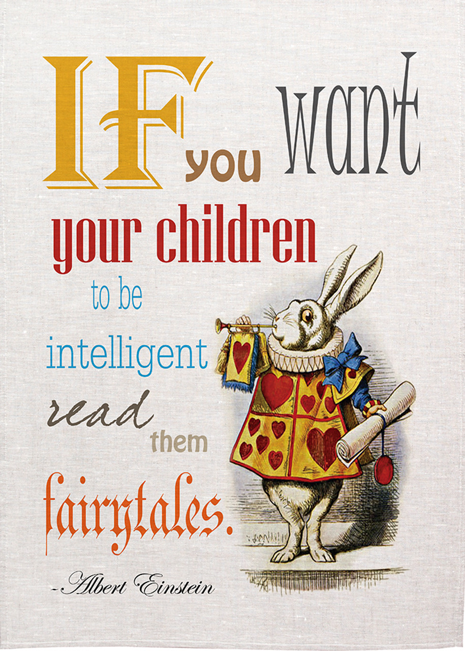 Alice in wonderland tea towel. White Rabbit says, If you want your children to be intelligent, read them fairytales,