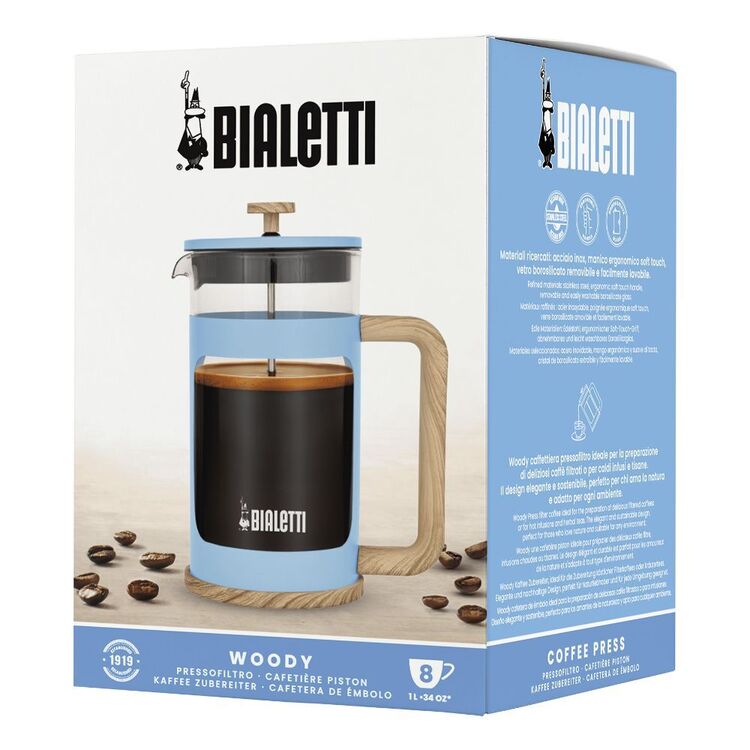 Bialetti Woody Coffee Press- Blue 1L=8 Cuppa