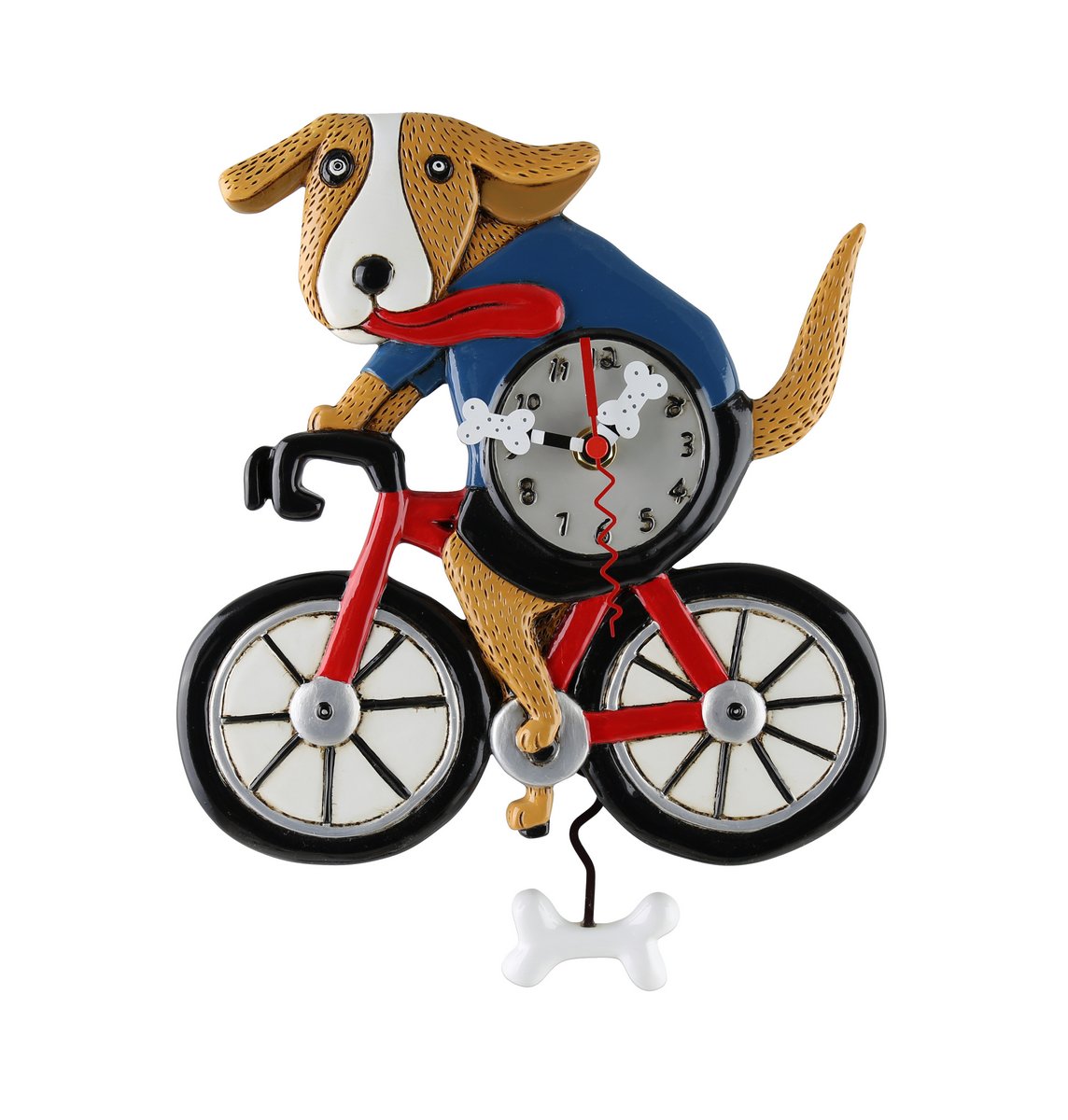 - Design: A playful dog on a bicycle with a functional pendulum.
