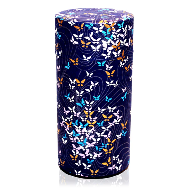 This Japanese tea canister is originally designed to hold approximately 200g of leaf tea, specifically sencha or green tea. The actual amount of leaf tea the canister will hold depends very much on the type of tea. A bulkier tea such as a herbal tea with buds and fruit pieces will fill the tea tin with less weight.