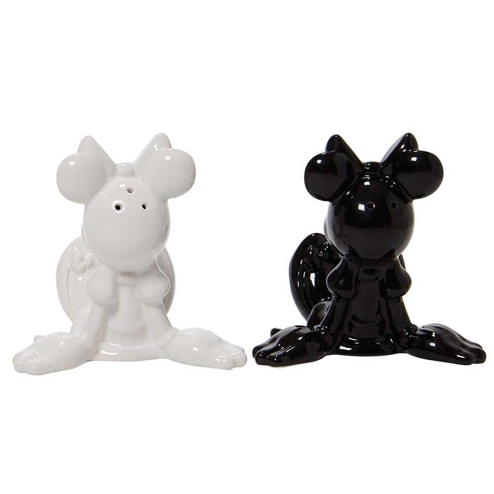 Cute and classic in every way, these black and white Minnie Mouse salt and pepper shakers will help you add spice to your next meal. They are simple and sophisticated, a perfect addition to your kitchen! Hand wash recommended Presented in an acetate cover branded gift box.