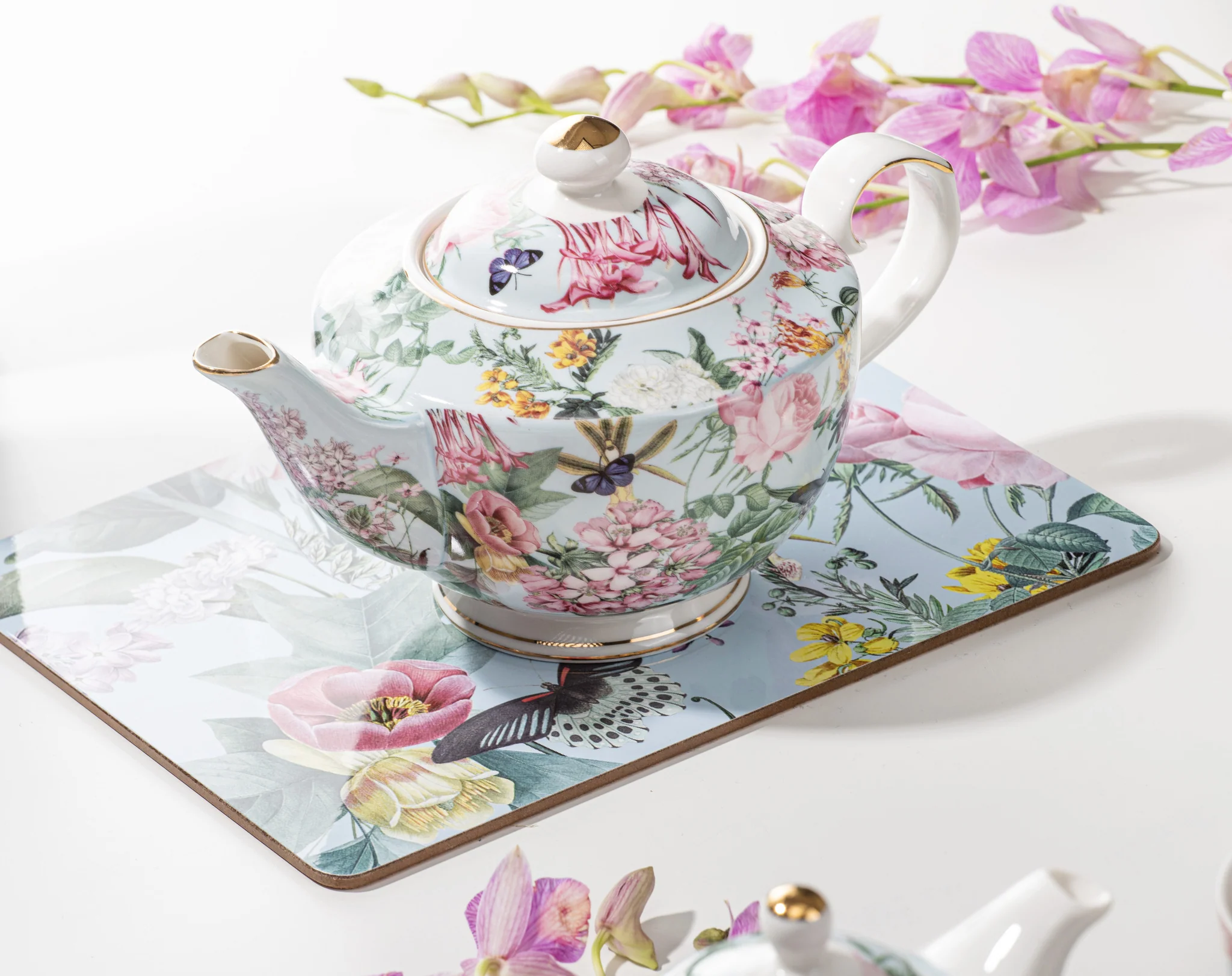Romantic Garden Teapot & 2 Teacup Set